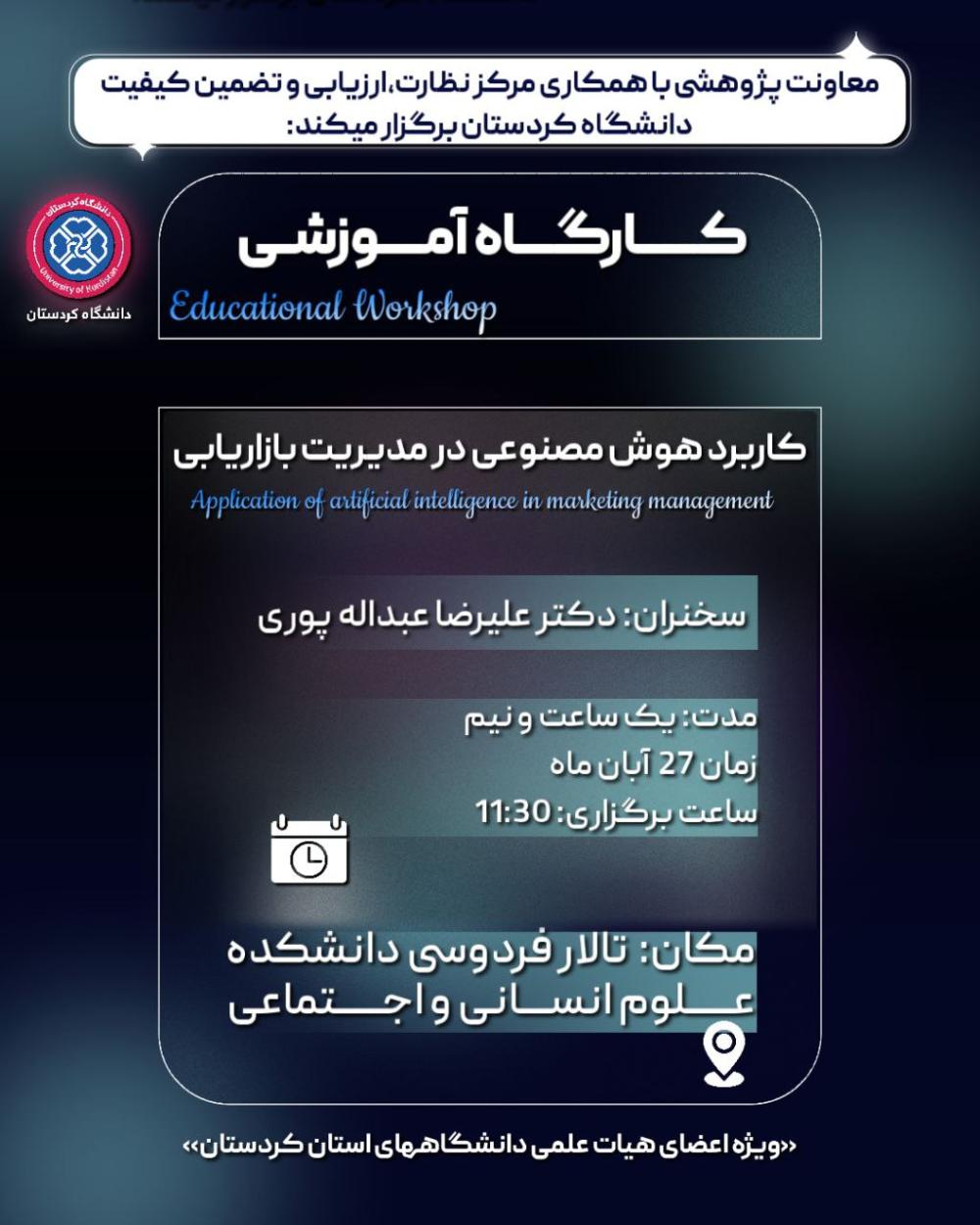 معاونت پژوهشی با همکاری مرکز نظارت، ارزیابی و تضمین کیفیت دانشگاه کردستان برگزار مینماید.