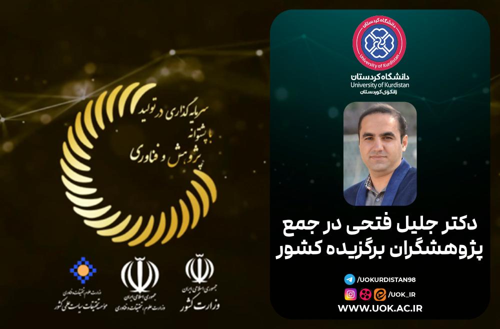افتخارآفرینی ملی عضو هیئت علمی دانشگاه کردستان؛ دکتر جلیل فتحی در جمع پژوهشگران برگزیده کشور