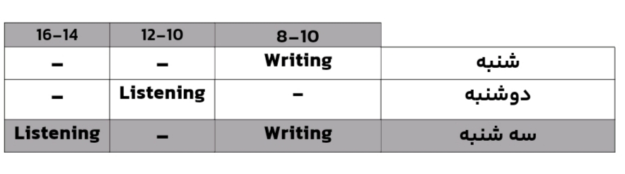 نوبت سوّم از زنجیره ی کلاسهای فوق برنامه آموزش زبان انگلیسی(Writingو Listening) در نیمسال اوّل سال تحصیلی1405-1404به قرار زمانی مندرج در جدول ذیل: