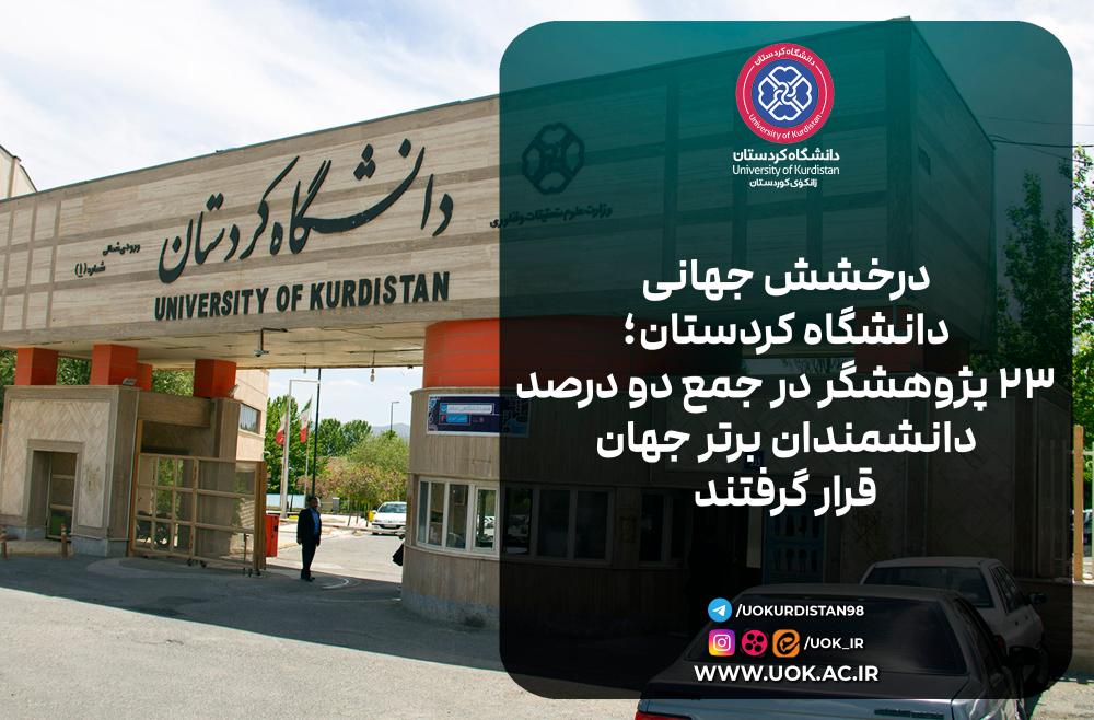 به گزارش روابط عمومی دانشگاه کردستان، بر اساس آخرین دادههایی که توسط پایگاه معتبر Elsevier منتشر شده است، 23 نفر از اعضای هیئت علمی و پژوهشگران این دانشگاه موفق شدند نام خود را در فهرست دو درصد دانشمندان پراستناد جهان به ثبت برسانند.